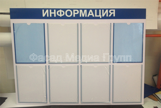 Рекламно-производственная компания "Фасад Медиа Групп" занимается изготовлением информационных стендов «под ключ»:
