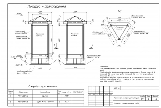 Под проектированием конструкций наружной рекламы принято понимать процесс определения архитектуры, компонентов, интерфейсов и других характеристик рекламных конструкций. Результатом проектирования конструкций наружной рекламы является технический проект – целостная совокупность моделей, свойств или характеристик, описанных в форме, пригодной для реализации рекламной конструкции.