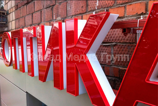 Уважаемые друзья! За изготовлением и установкой рекламных букв (плоских, объемных) обращайтесь в компанию «Фасад Медиа Групп». Высокий уровень сервиса и низкие цены гарантируем. Мы все сделаем сами: дизайн и эскиз макета, подготовка документов, согласование и монтаж. Фотоотчёт предоставляем бесплатно и в 100% объеме.