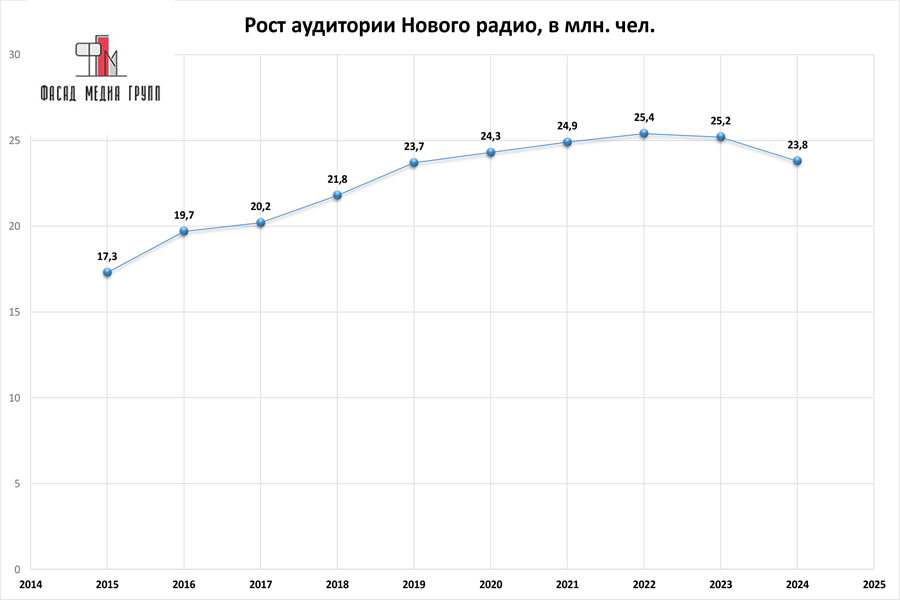 Показатели аудитории «Нового радио» по России: