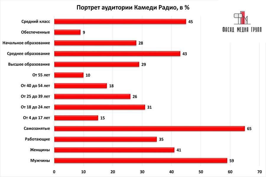 На вопрос: «Какова целевая аудитория радио «Камеди Радио»? - можно указать следующее: