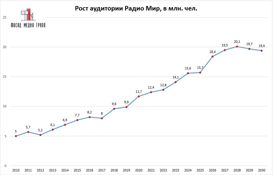 Благодаря качественному, сбалансированному контенту аудитория «Радио Мир» многочисленна и разнообразна.