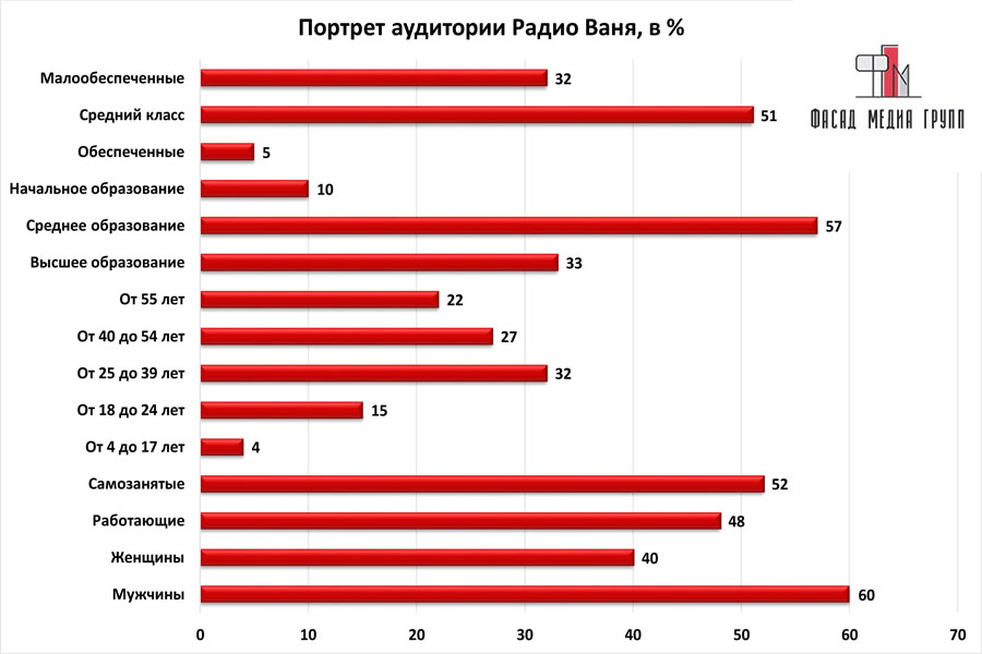 На вопрос: «Какова целевая аудитория радио «Ваня»? - можно указать следующее: