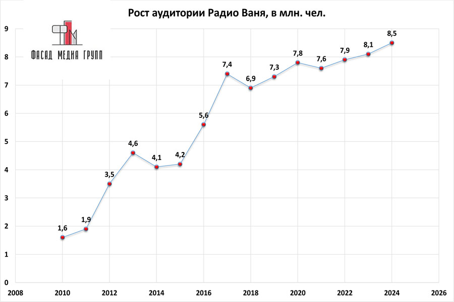 Показатели аудитории радио «Ваня» в России: