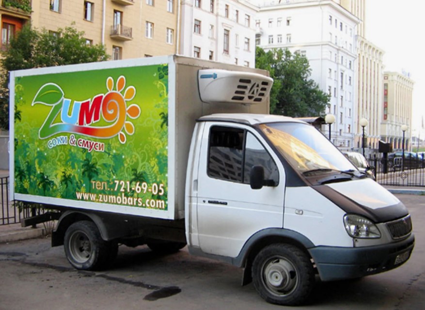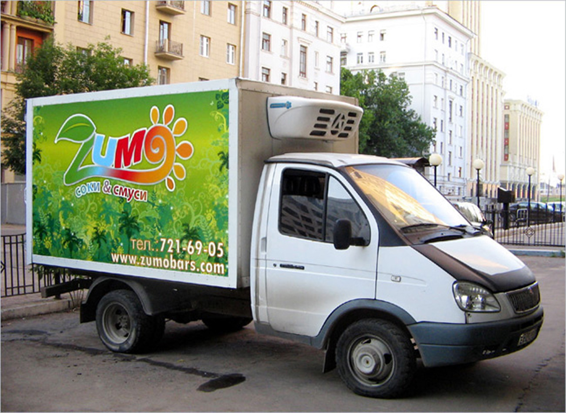 Приводим примеры монтажа рекламы на мобильных билбордах: