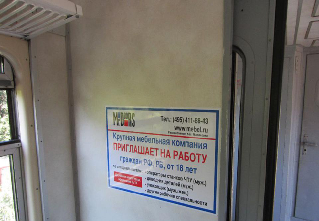 Сколько стоит изготовление рекламы для размещения в электричках?