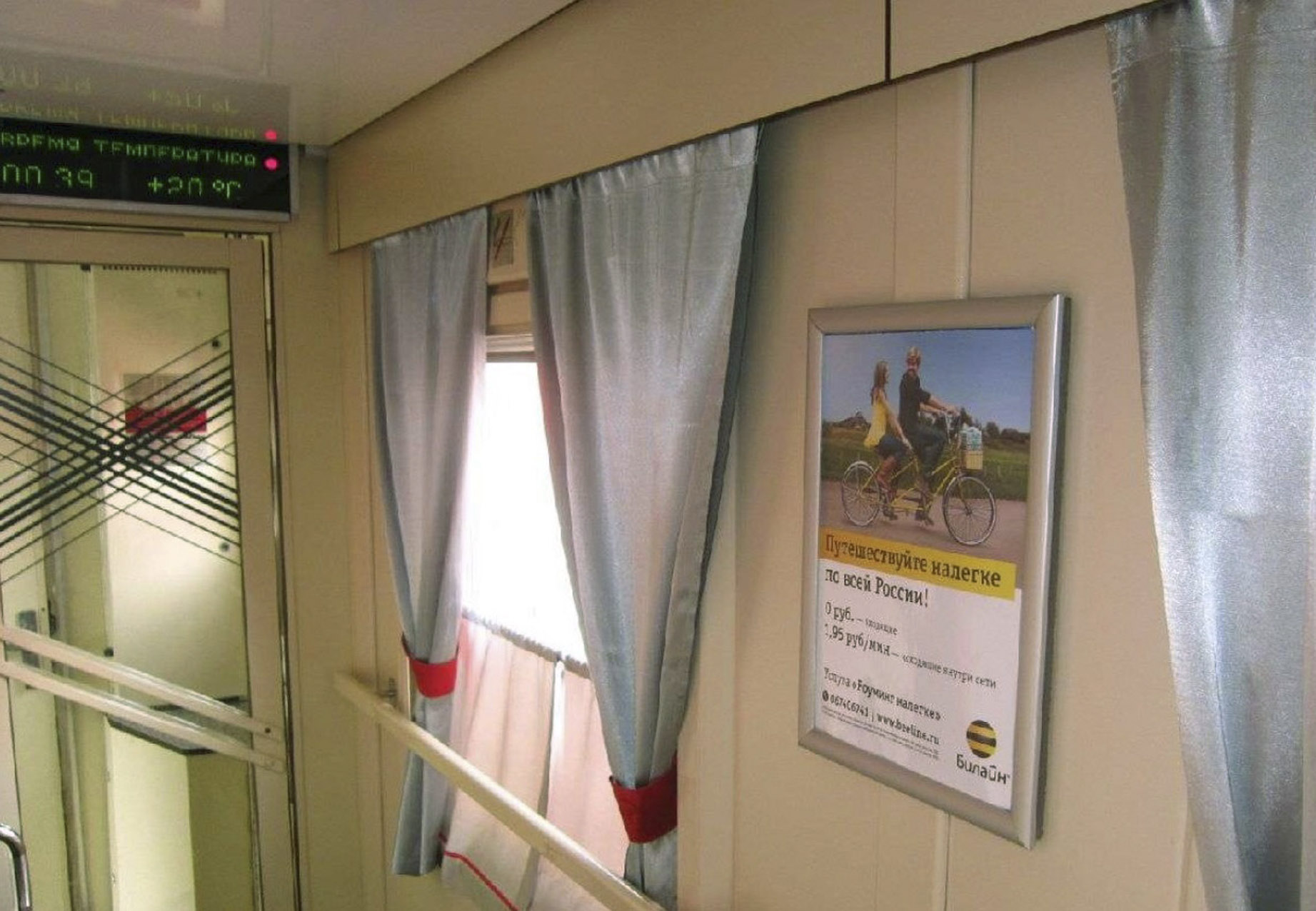 Монтаж рекламы в поездах дальнего следования осуществляется по-разному в зависимости от того, какой рекламный материал и где размещается.
