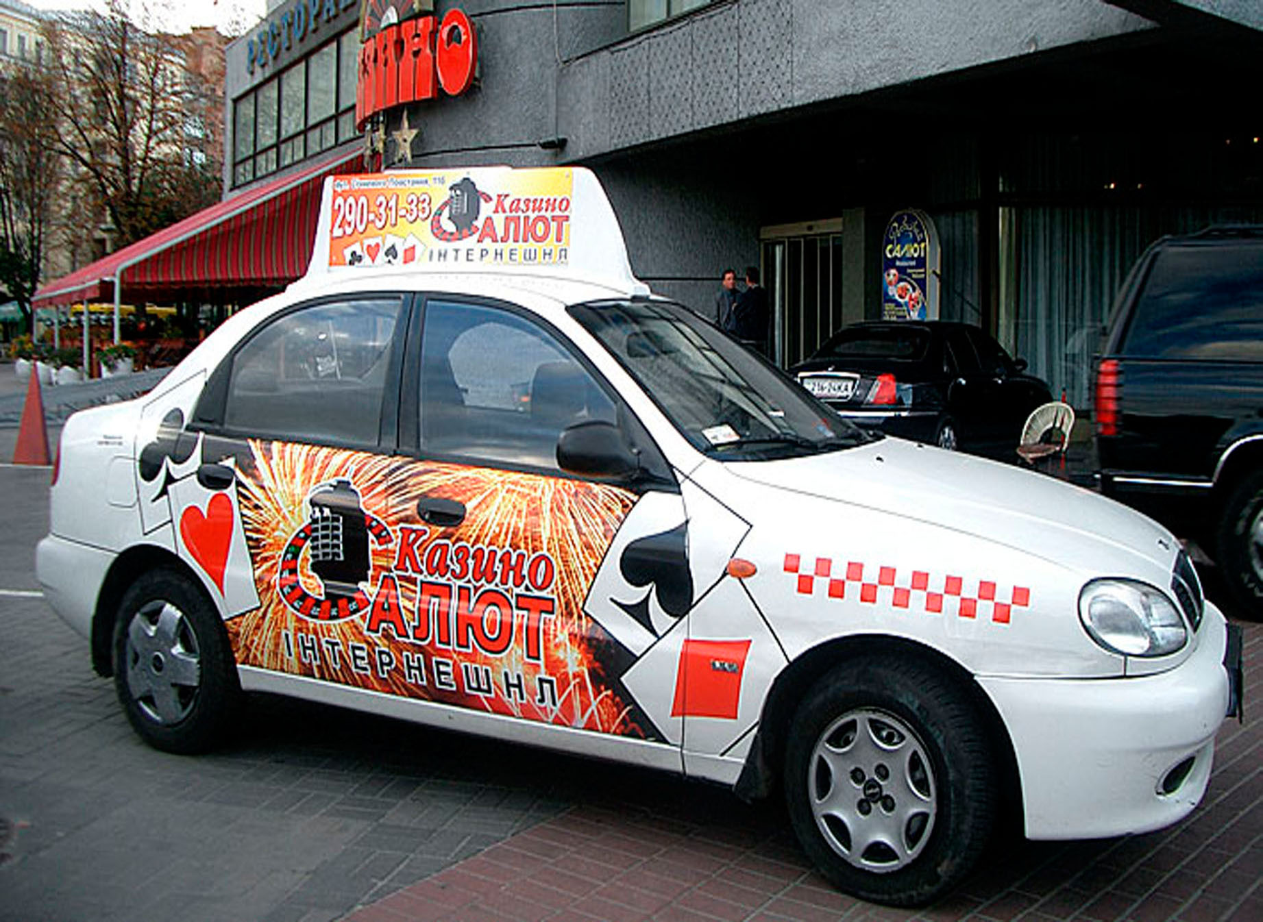 Многие рекламодатели с большим удовольствием размещают рекламу на/в такси. Что же представляет собой реклама на/в такси? Реклама на/в такси – это рекламное объявление, размещенное как внутри салона такси (листовки, постеры, мониторы), так и снаружи (оклейка дверей, бортов, заднего стекла, полностью кузова транспортного средства), сообщающее пассажирам, прохожим, а также водителям частных авто информацию о предлагаемых товарах, услугах и местах их приобретения.