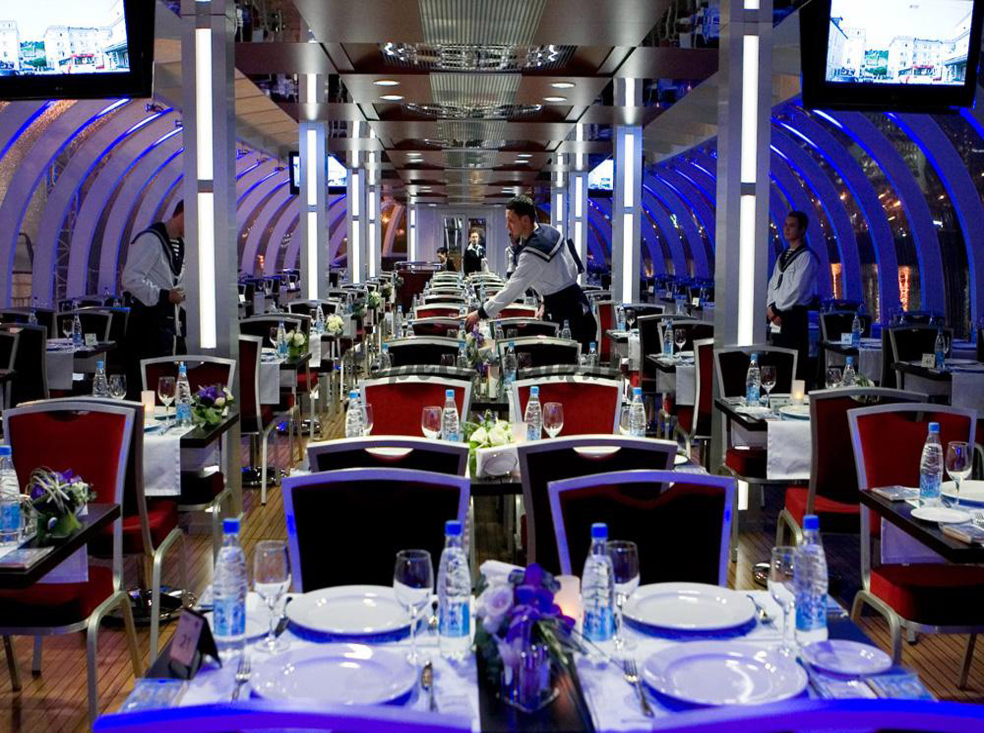 Плакаты на столиках на теплоходах на фото выше