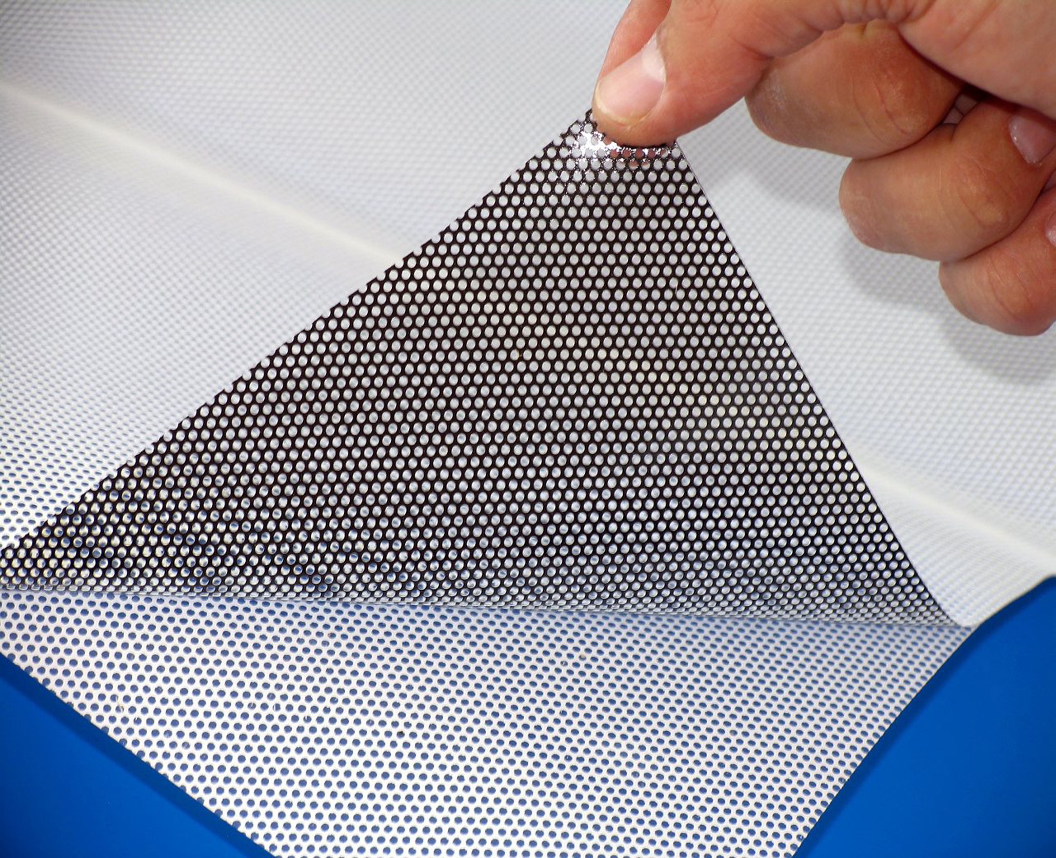 Перфорированная пленка представляет собой ПВХ-пленку с клеевым слоем и перфорационными отверстиями, занимающими до половины всей ее площади. Перфорированная пленка используется для оклейки стекол теплохода.