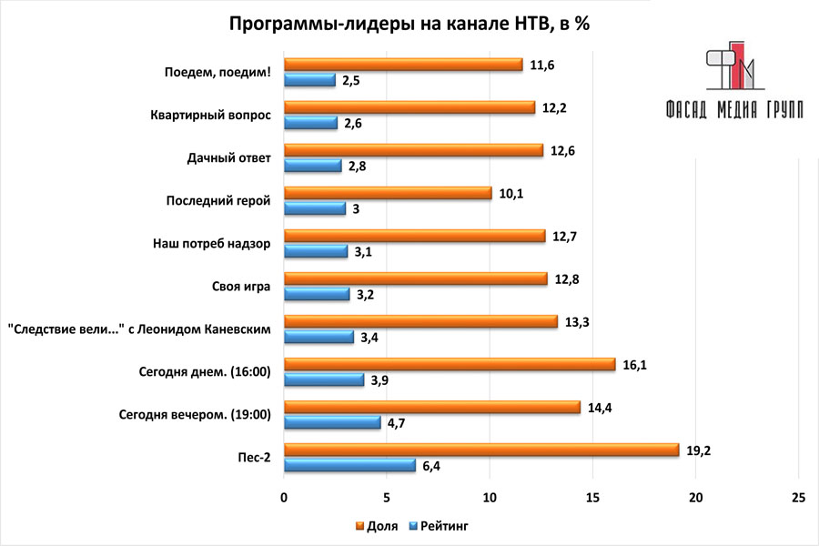 Популярность телеэфира на «НТВ» приводит к ежегодному увеличению спроса на рекламное время. Для привлечения клиентов из разных регионов России, увеличения процента продаж, повышения имиджа компании и узнаваемости бренда – размещайте рекламу на «НТВ». «НТВ» – это проверенный и востребованный канал для размещения рекламы на армавирском ТВ. Для размещения рекламы на телевидении обращайтесь в рекламное агентство «Фасад Медиа Групп». Будем рады сотрудничеству.