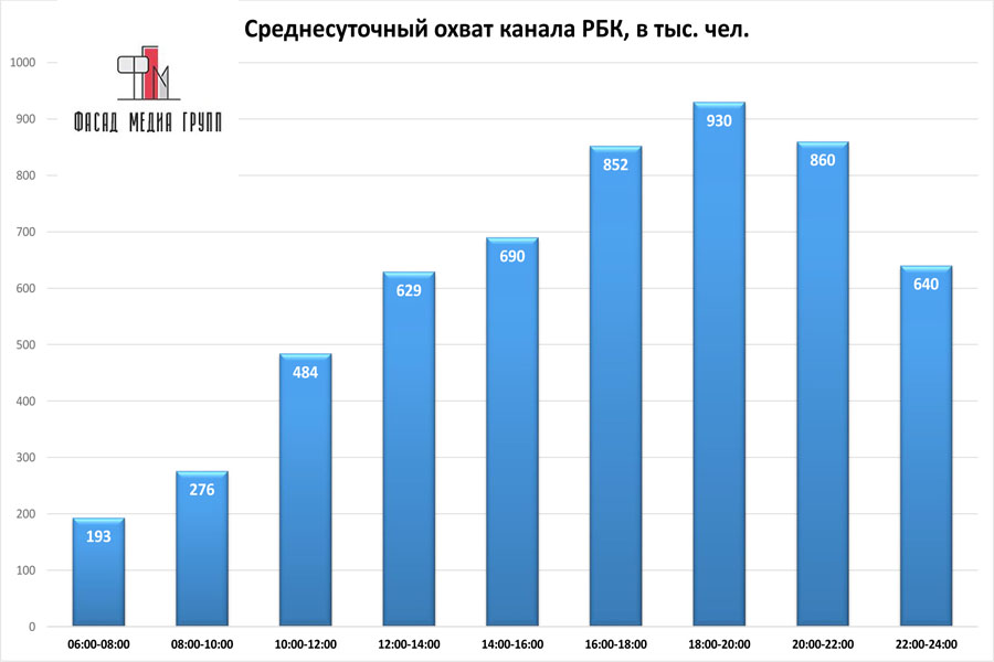 Популярность телеэфира на «РБК» приводит к ежегодному увеличению спроса на рекламное время. Для привлечения клиентов из разных регионов России, увеличения процента продаж, повышения имиджа компании и узнаваемости бренда – размещайте рекламу на «РБК». «РБК» – это проверенный и востребованный канал для размещения рекламы на армавирском ТВ. Для размещения рекламы на телевидении обращайтесь в рекламное агентство «Фасад Медиа Групп». Будем рады сотрудничеству.