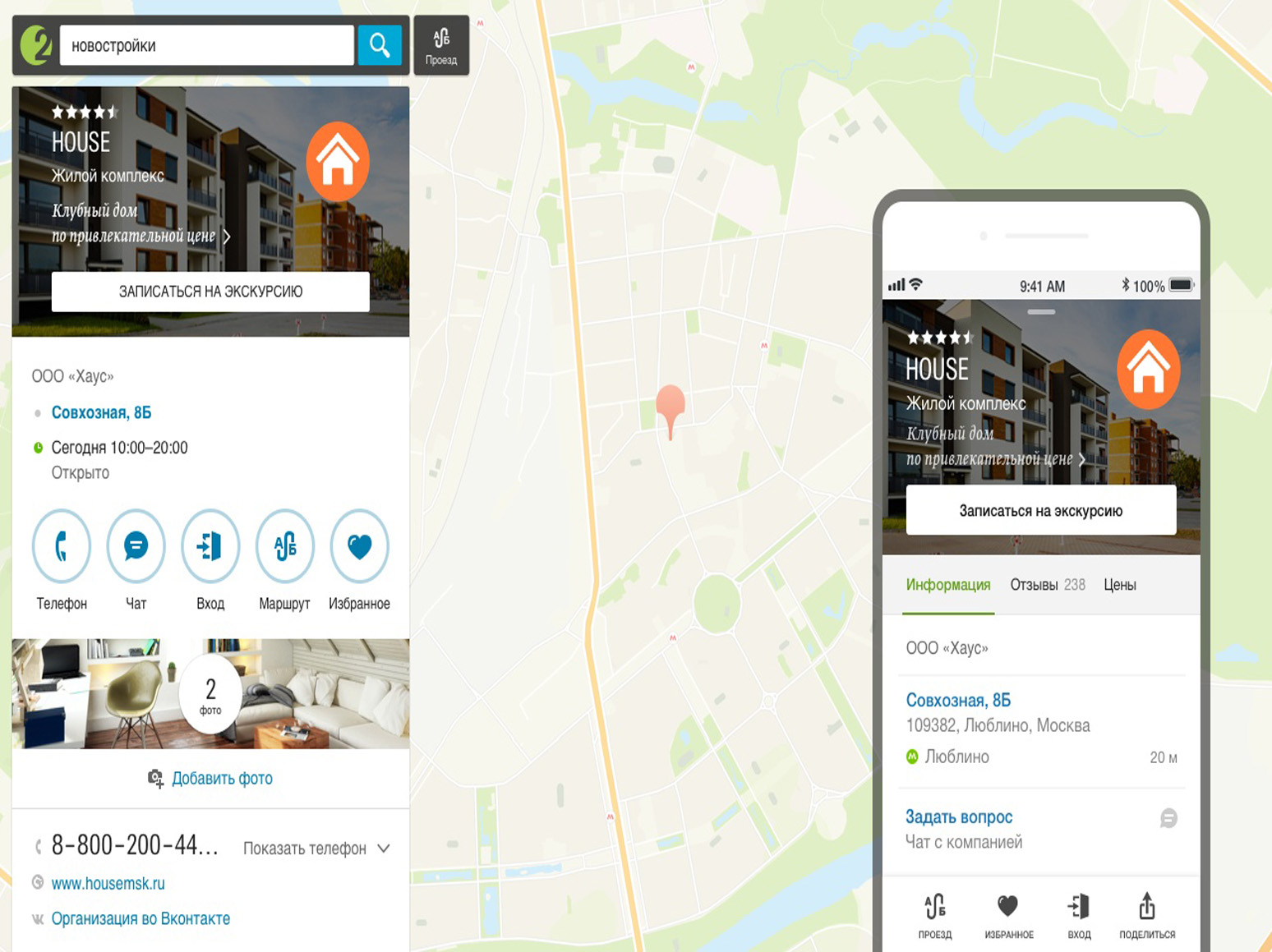 Пример рекламной ссылки в карточке компании 2ГИС (Двагис, ДубльГис) представлен на фото: