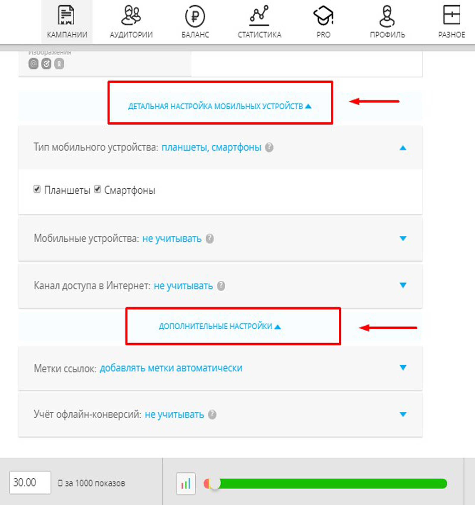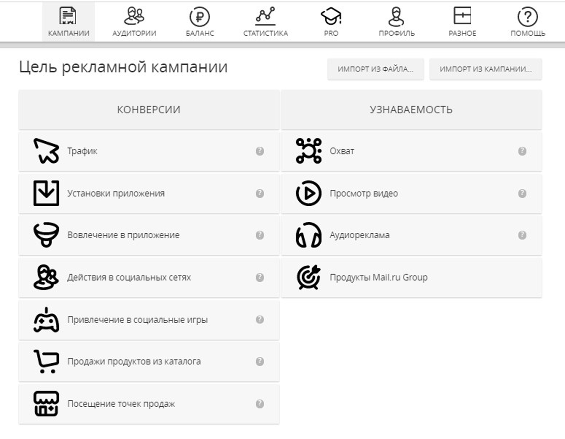Поставьте цель рекламной кампании