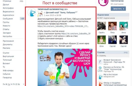 2) Реклама в сообществах ВКонтакте. Подписка на группы, страницы и мероприятия.