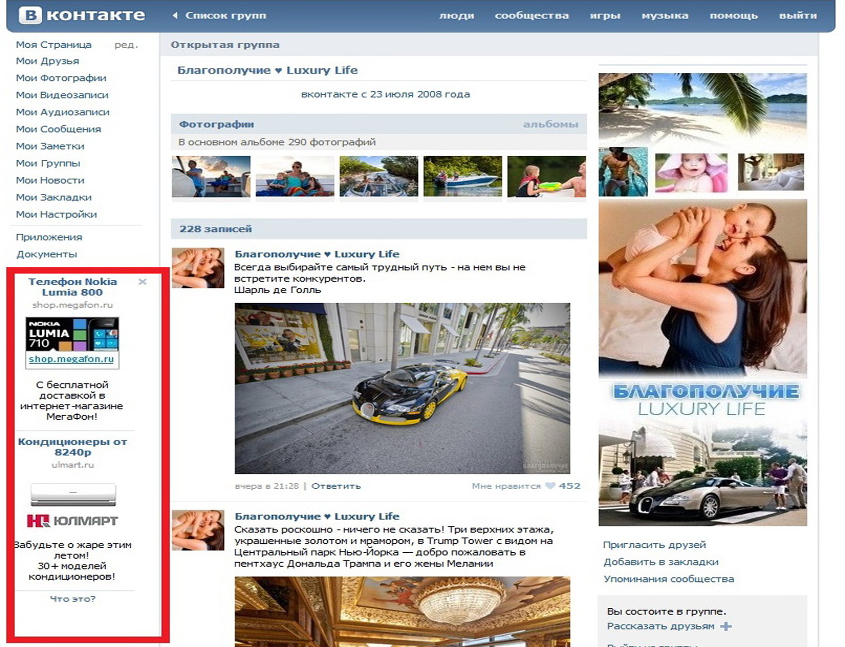 Низкие цены, большое число провайдеров, стабильный уровень сигнала делает Интернет комфортной площадкой для торговли. Сегодня миллионы людей имеют бизнес, основанный исключительно на сети Интернет. Ежедневно сотни тысяч рекламодателей размещают объявления в ВКонтакте, понимая, что их рекламу увидят миллионы людей. Таким образом можно сделать вывод, что реклама в ВКонтакте – это гарантия процветания вашего бизнеса, в том числе и за счет огромного количества пользователей.