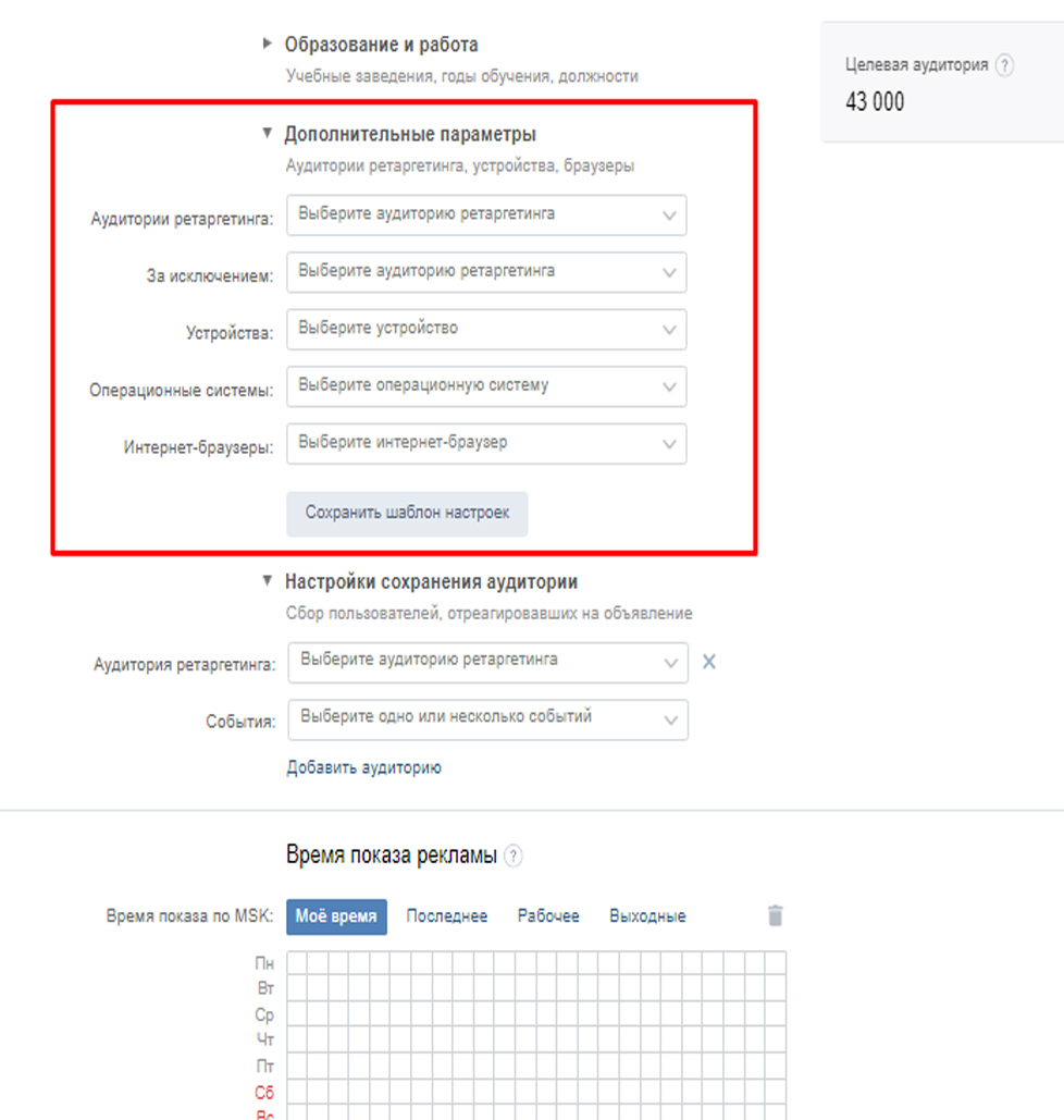 По умолчанию рекламные объявления работают круглосуточно, чтобы как можно больше людей могли их увидеть. Чтобы ваша реклама показывалась в конкретные часы и дни, задайте Время показа. Если вы не заполните таблицу с расписанием, показы будут идти круглосуточно. Показывать рекламу в будни или исключить показы ночью — выбирайте стратегию, которая поможет эффективнее решать вашу бизнес-задачу. Исключайте показ рекламы в нерабочее время — больше не будет ситуации, когда в вашей компании выходной, а пользователь увидел объявление, перешёл по ссылке, но не смог до вас дозвониться. Кроме того, настройка времени показа рекламы позволяет эффективно продвигать акции и спецпредложения. Например, ресторан может приглашать на бизнес-ланч по будням перед обедом, а салон красоты на маникюр со скидкой по утрам в выходные. Расписание рекламы позволит экономно расходовать бюджет и показывать рекламу тогда, когда клиенты активны и готовы к покупкам.
