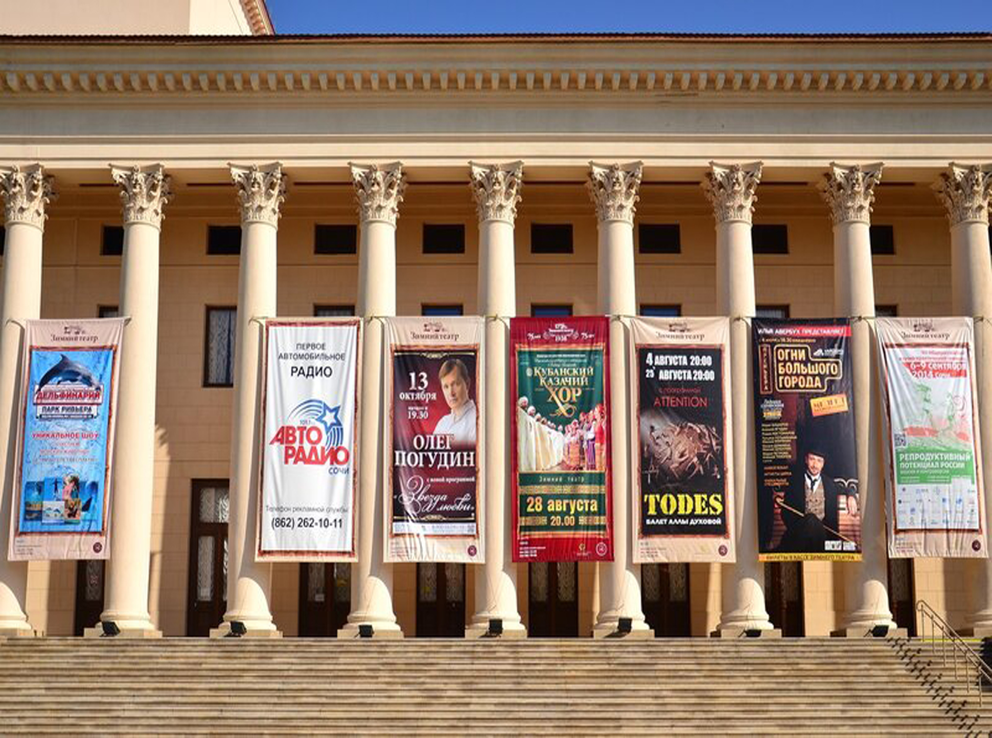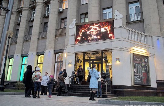 Пример рекламного баннера на здании театра: