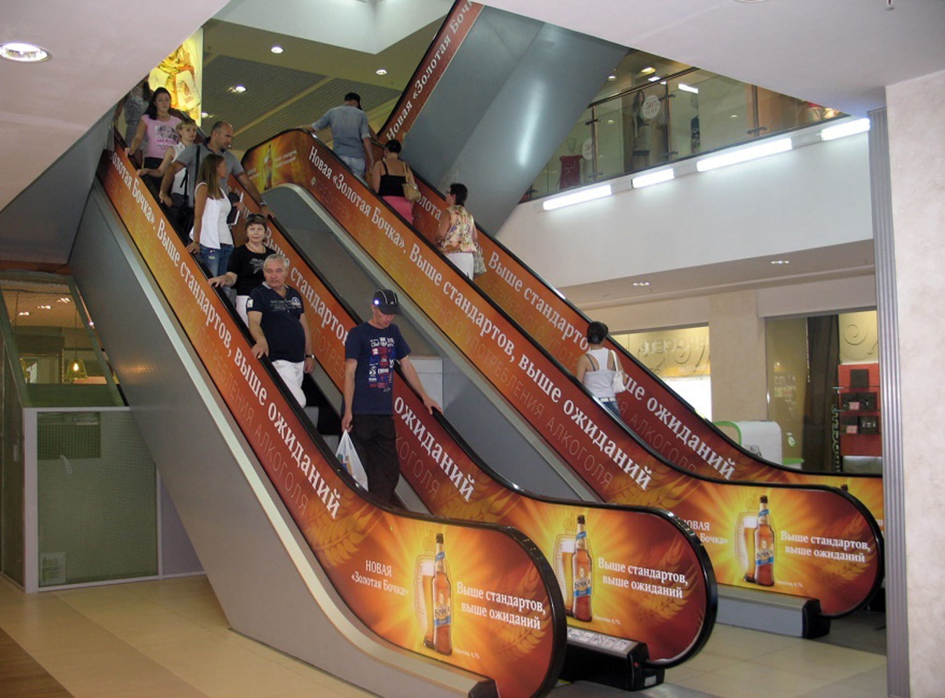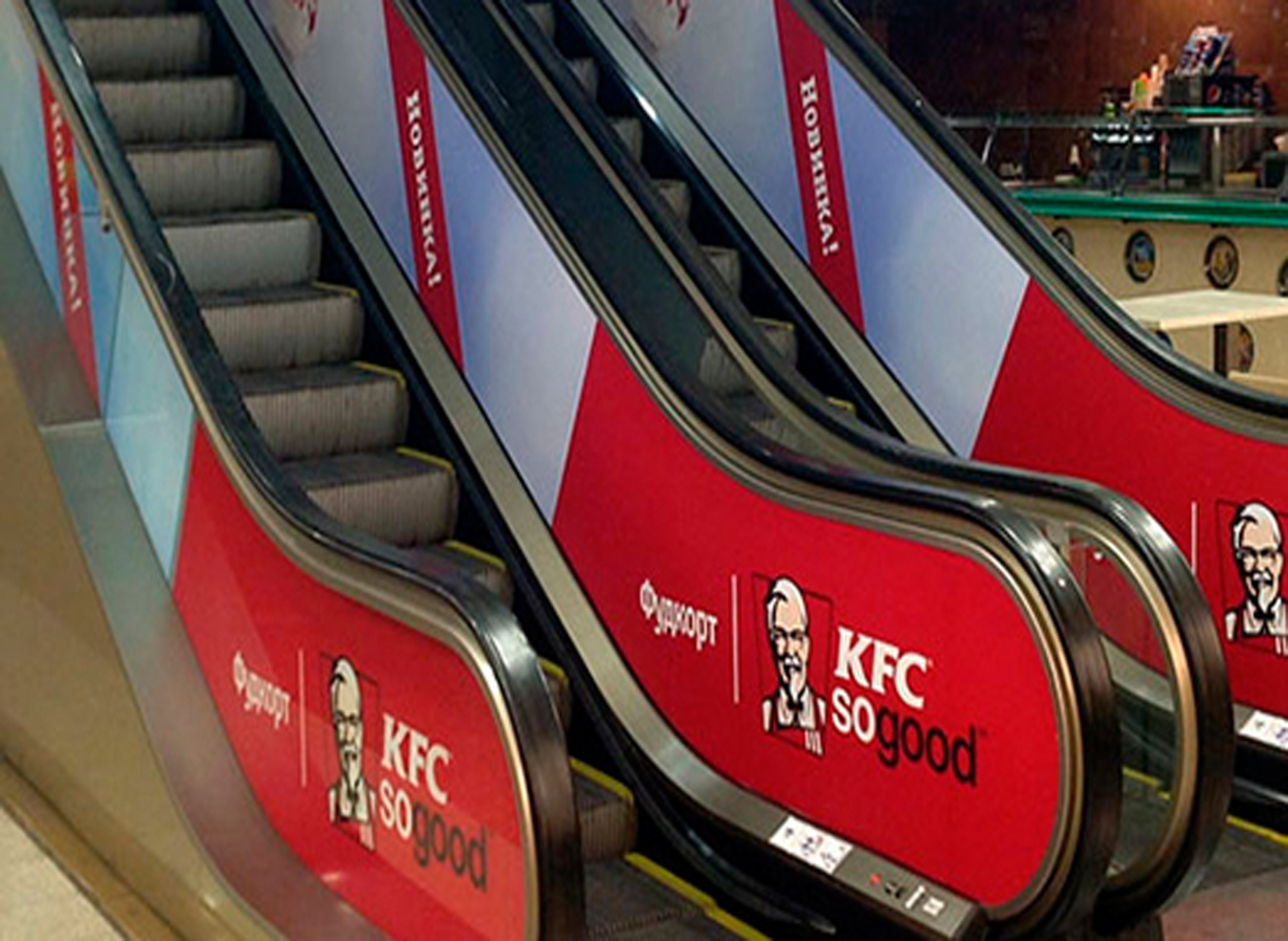 Пример рекламы в виде брендирования эскалатора в торговых центрах: