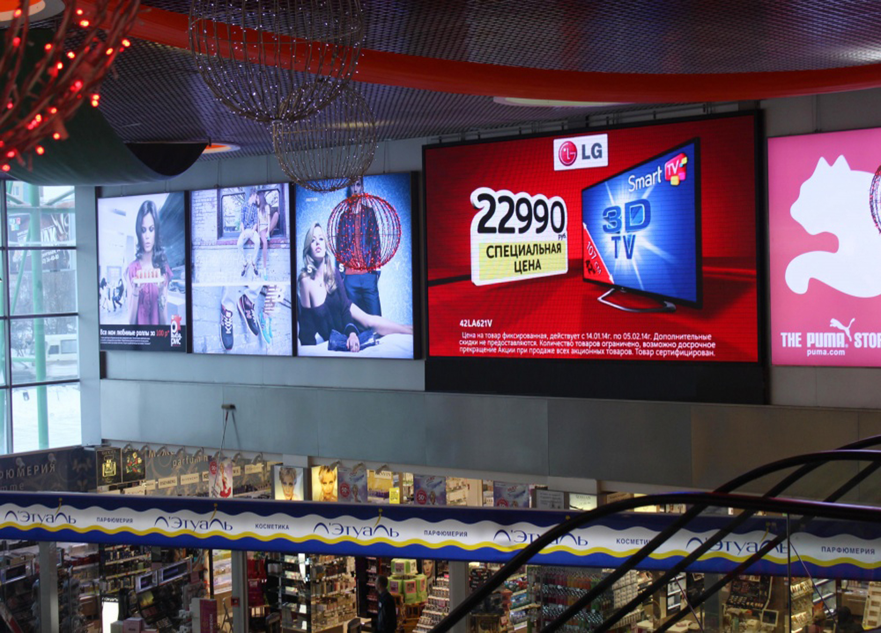 Примеры наших работ при размещении рекламы в торговых центрах представлены ниже: