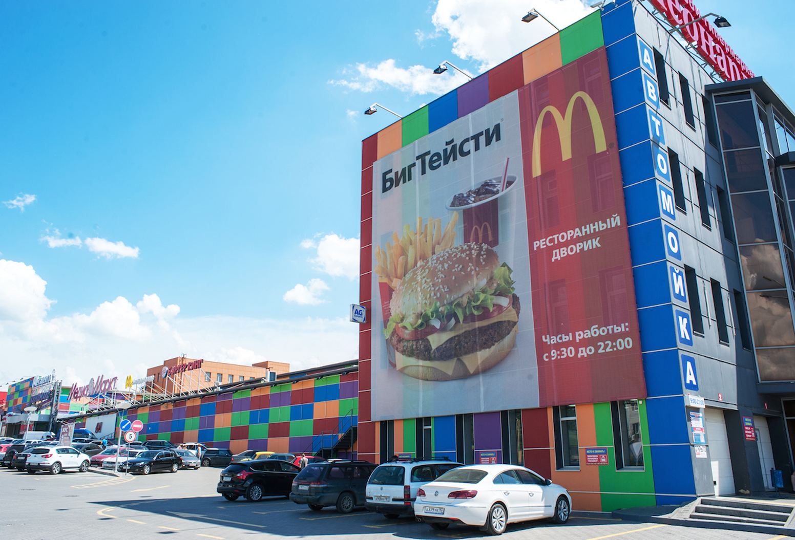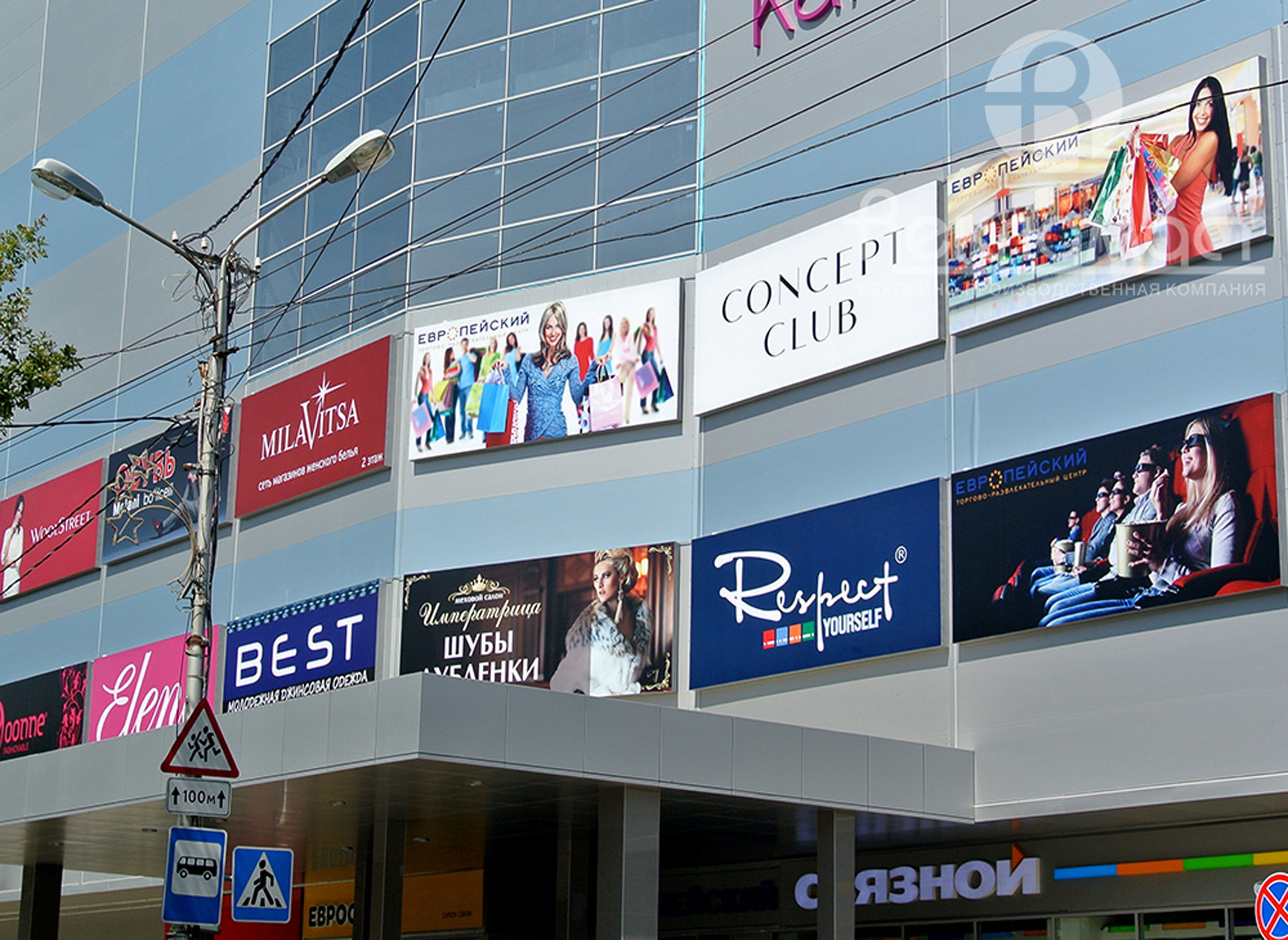 Пример рекламного баннера на здании торгового центра: