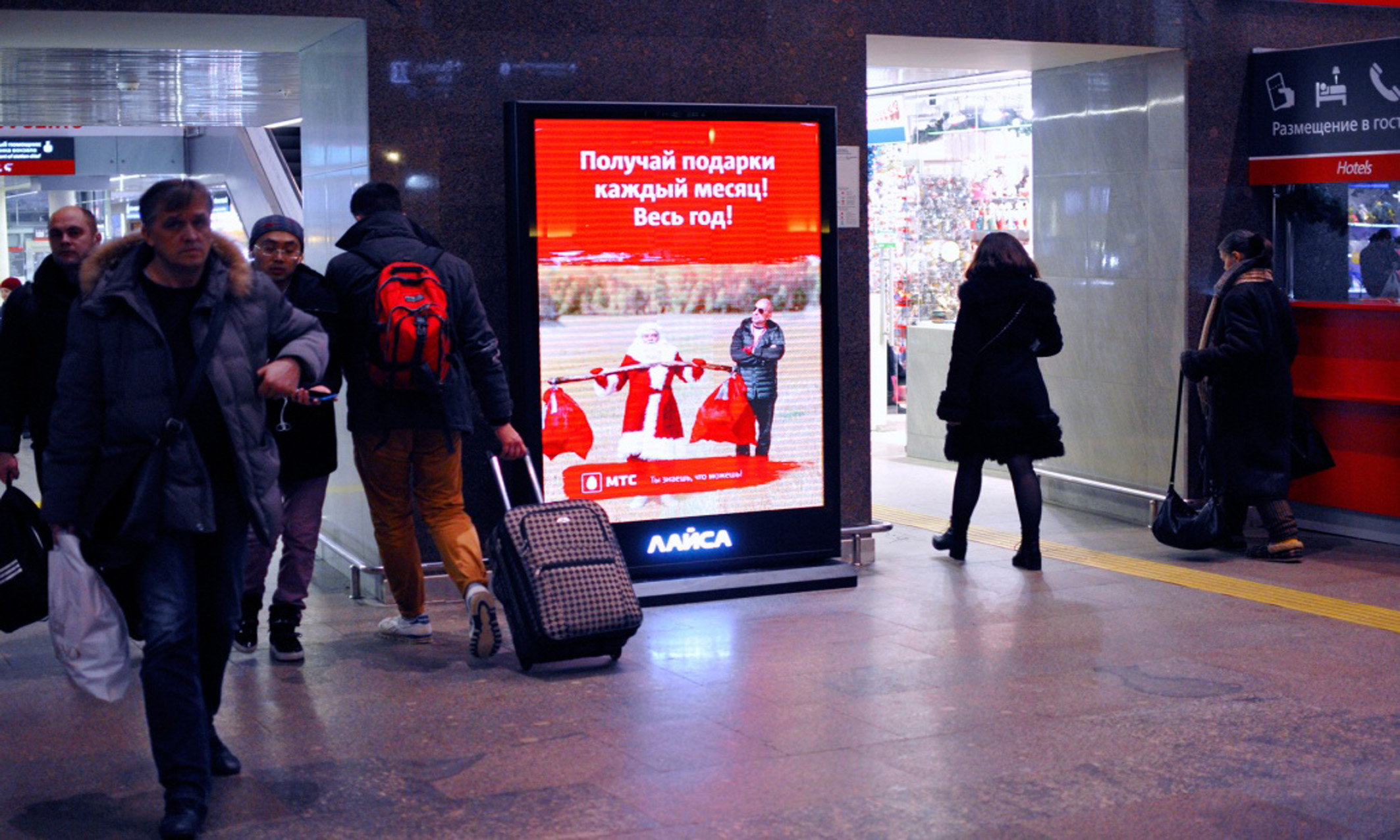 Пример рекламного лайтбокса в железнодорожном вокзале: